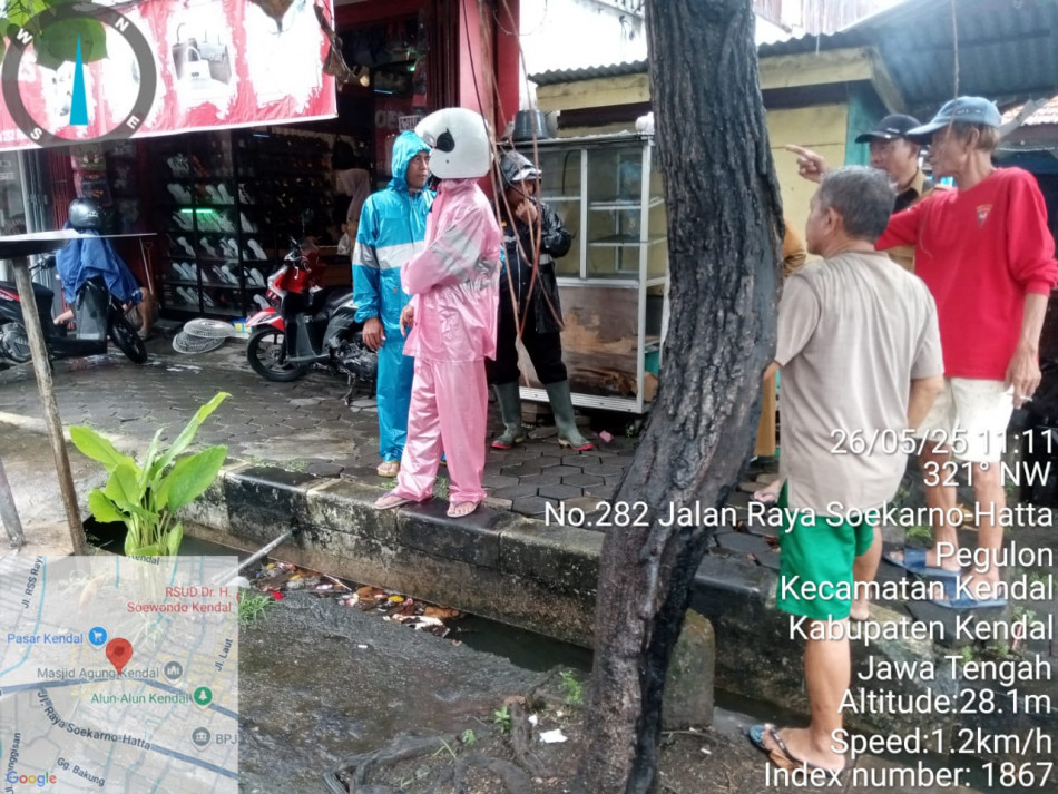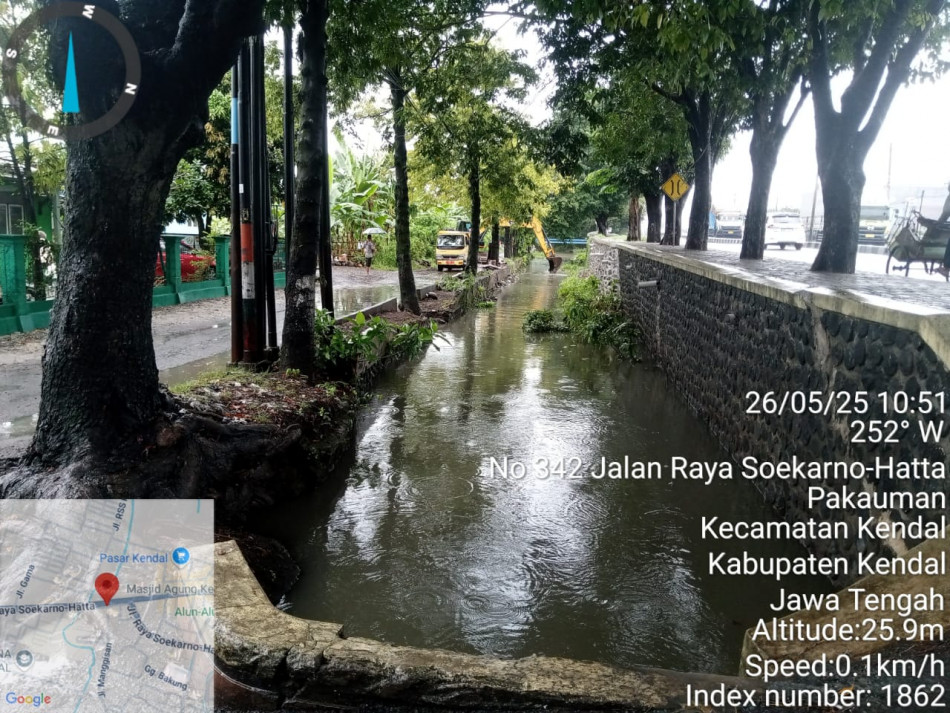 Kelanjutan dari Laporan Lurah Pekauman tentang saluran air di sepanjang Jl. Soekarno Hatta Pekauman Kendal (Sepanjang Depan Toko Hidup) yang mampat (20 Mei 2025), kepada Kepala Dinas Pekerjaan Umum dan Penataan Ruang, Lurah Pekauman (Titit Indriyani, S.IP), Sekretaris Kelurahan (Tri Budi Lestari, S.E.), dengan Perangkat Pelaksana Sdr. Sudarno, Sdr. A. Rizal Annas, dan Srd. Badrudin, Senin, 26 Mei 2026 datang ke lokasi langsung. Di lokasi, Perangkat Kelurahan Pekauman ditemui oleh Ketua Rt. 01 Rw. 03 (Bp. T.B. Hardjono) dan Tokoh Masyarakat setempat ( Bp. Subagyo). Pada Senin pagi itu hujan deras sejak dini hari, saluran air semakin meluap karena kemampatannya. Lurah Pekauman berkoordinasi dengan Kecamatan Kendal (Kepala Seksi Trantib : Bp. Arief Windarto, S.Hut.) dan DPUPR (Bp. Furqon) yang kemudian juga meninjau lokasi. Kesimpulan bahwa sumber kemampatan kemungkinan ada di seberang jalan. Untuk penanganan DPUPR akan berkoordinasi dengan Provinsi. Warga mesti bersabar dulu dan juga mohon untuk tidak membuang sampah di saluran air.