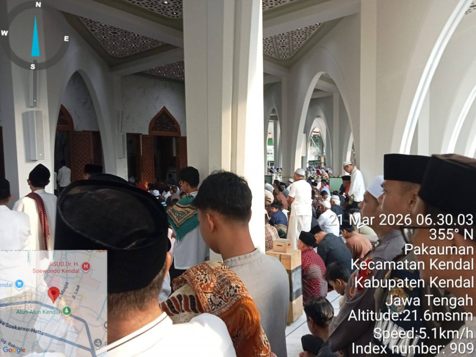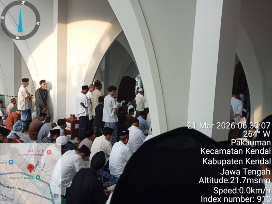 Umat Muslim tengah melaksanakan sholat Idul fitri di Masjid agung Kendal, Sabtu 21 Maret 2026 / 1 Syawal 1447 H.