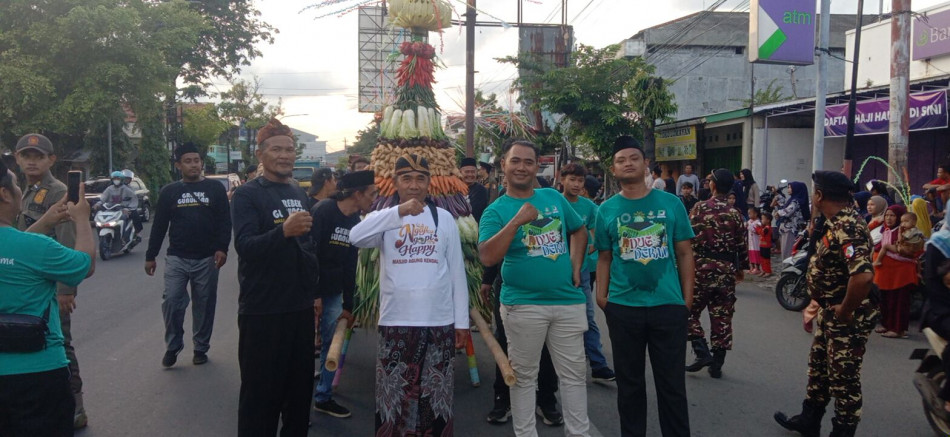 Halaman Kelurahan Pekauman, Selasa (17/2), siang itu berubah riuh. Puluhan warga memadati halaman, menanti detik-detik yang paling dinanti, yakni mengarak kafilah gunungan LEPET DAN ANEKA SAYURAN menuju Masjid Agung Kendal.